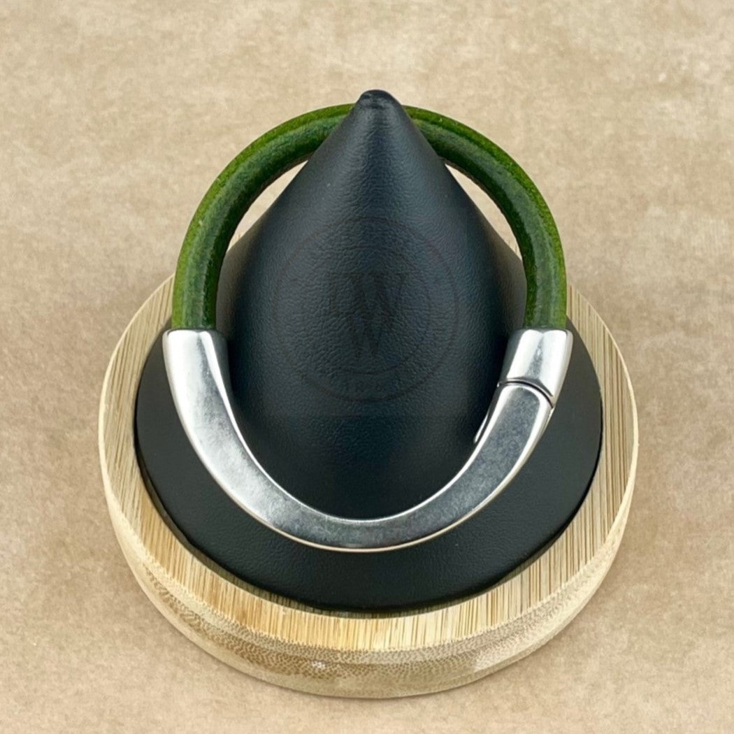 Distressed Grass Green Leather Arena Bracelet with Single Antique Silver Magnetic Clasp
