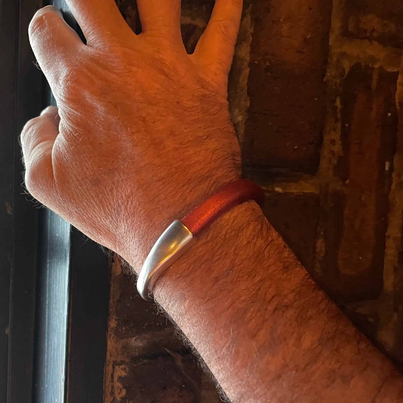 Metallic Coral Leather Unisex Arena Bracelet-5