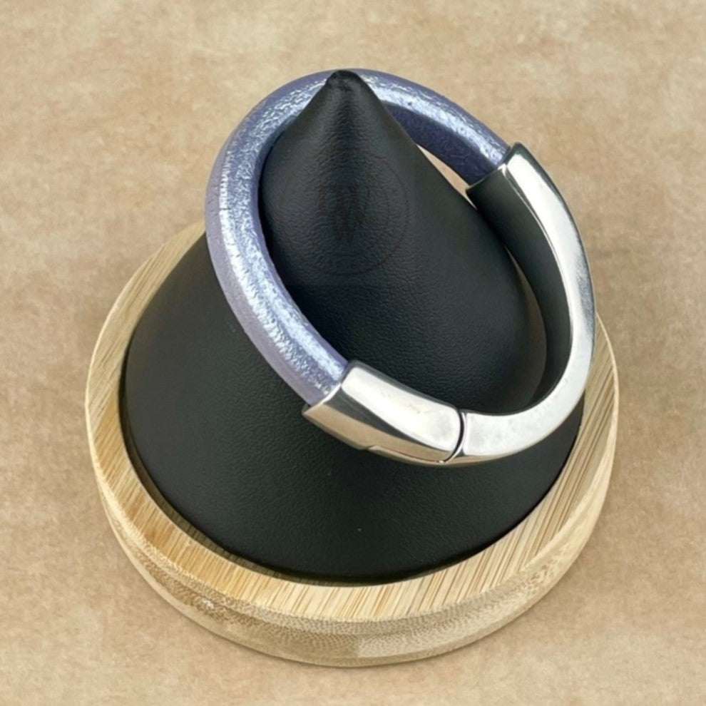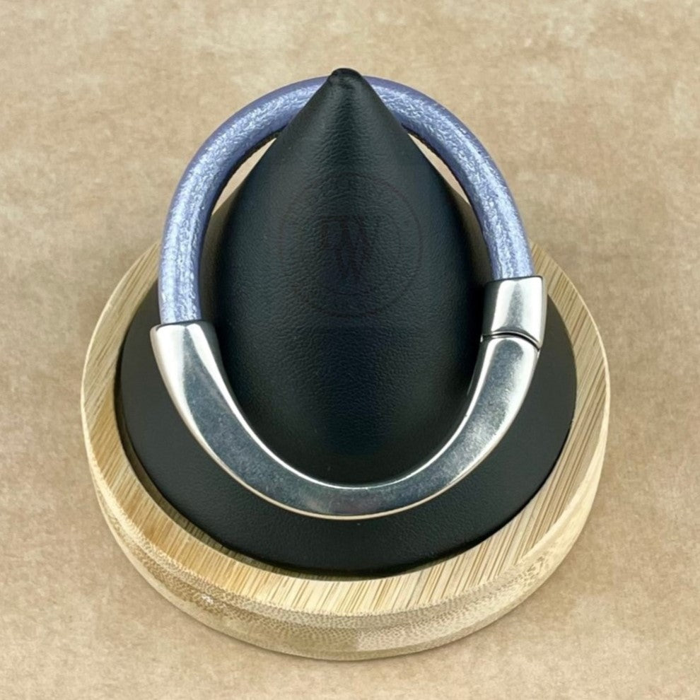 Metallic Lilac Leather Arena Bracelet with Single Antique Silver Magnetic Clasp