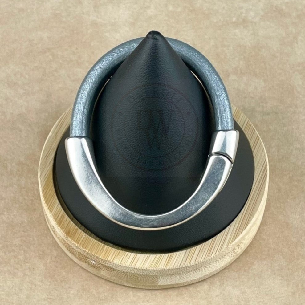 Metallic Silver Leather Arena Bracelet with Single Antique Silver Magnetic Clasp