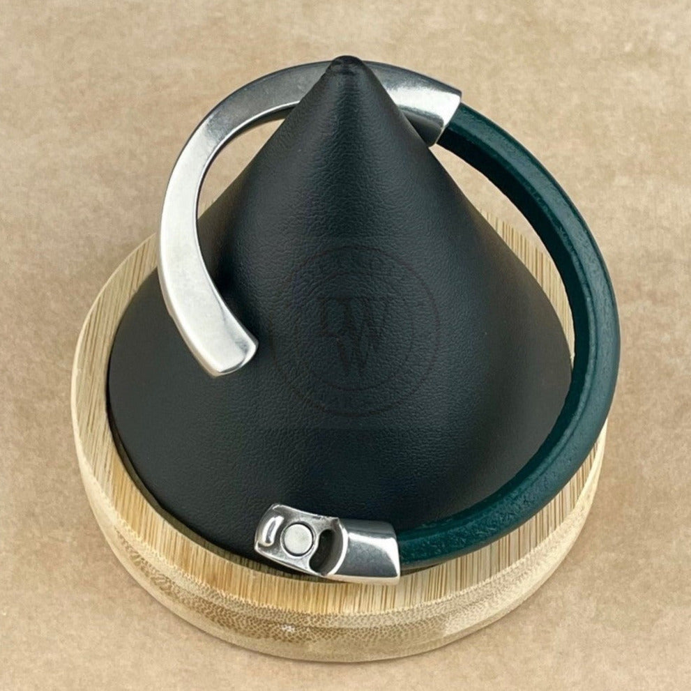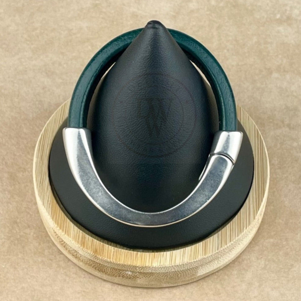 Midnight Green Leather Arena Bracelet with Single Antique Silver Magnetic Clasp