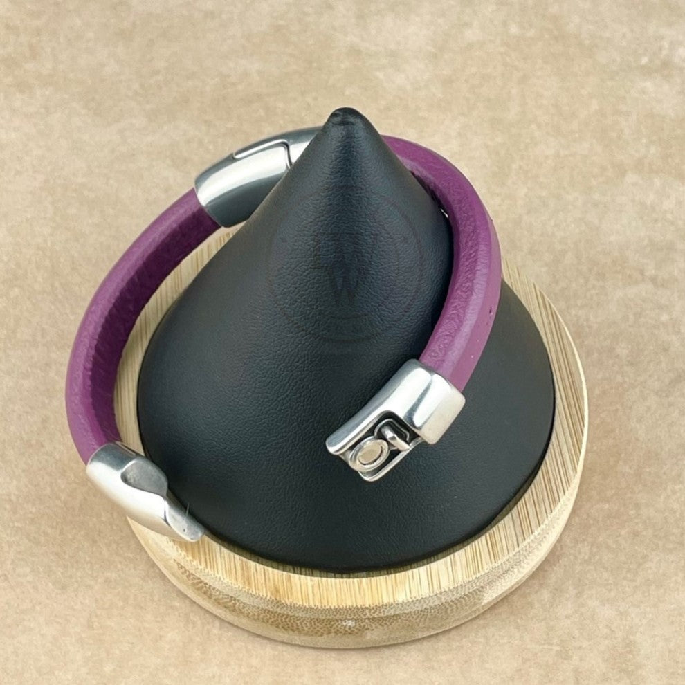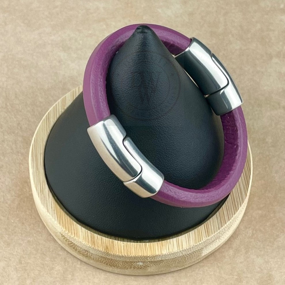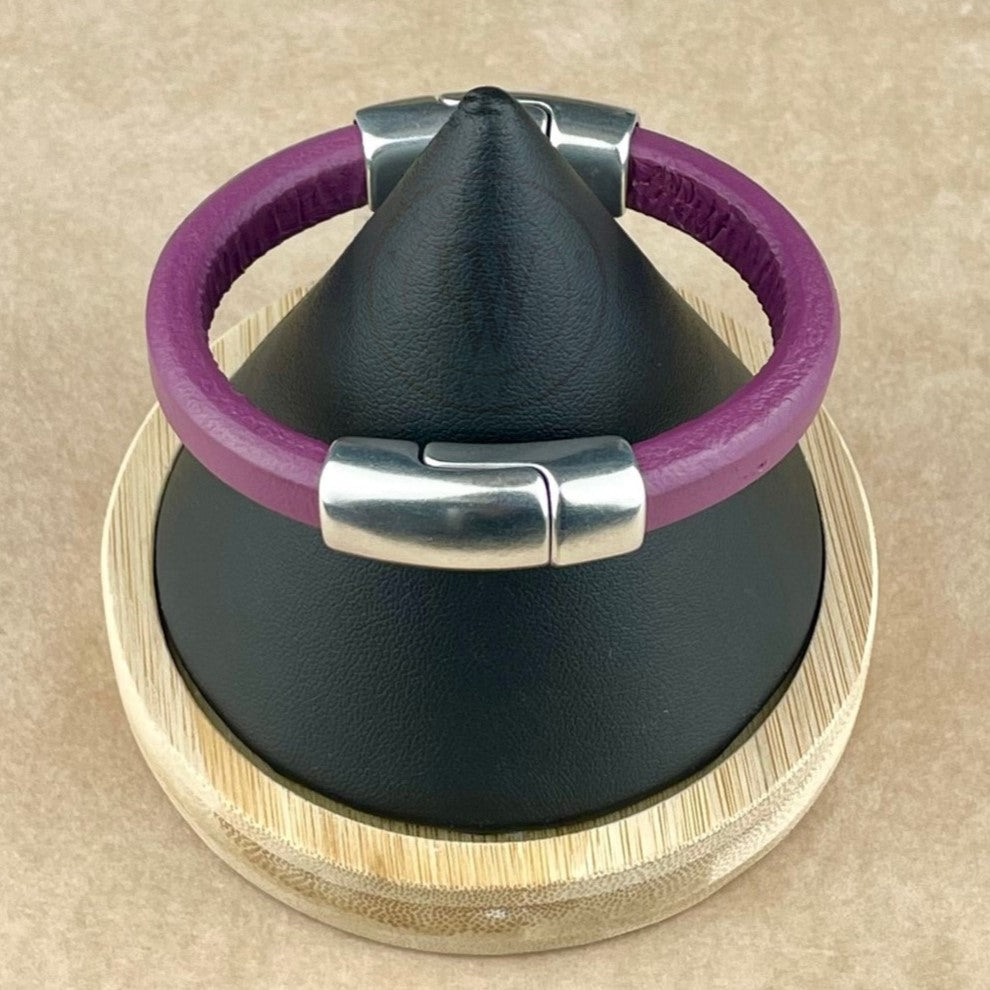 Plum Leather Cobo Bracelet with Double Antique Silver Magnetic Clasps