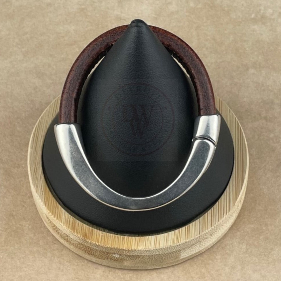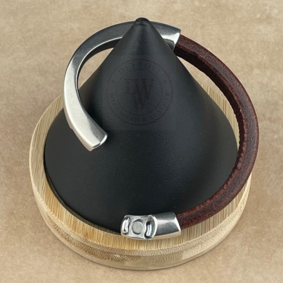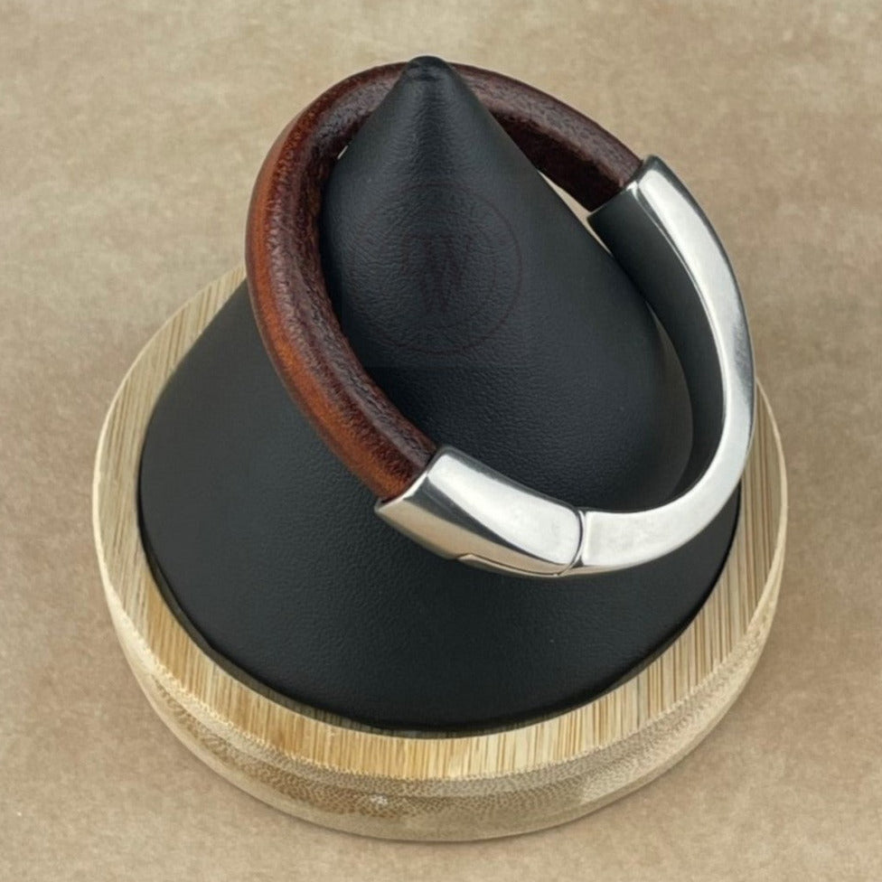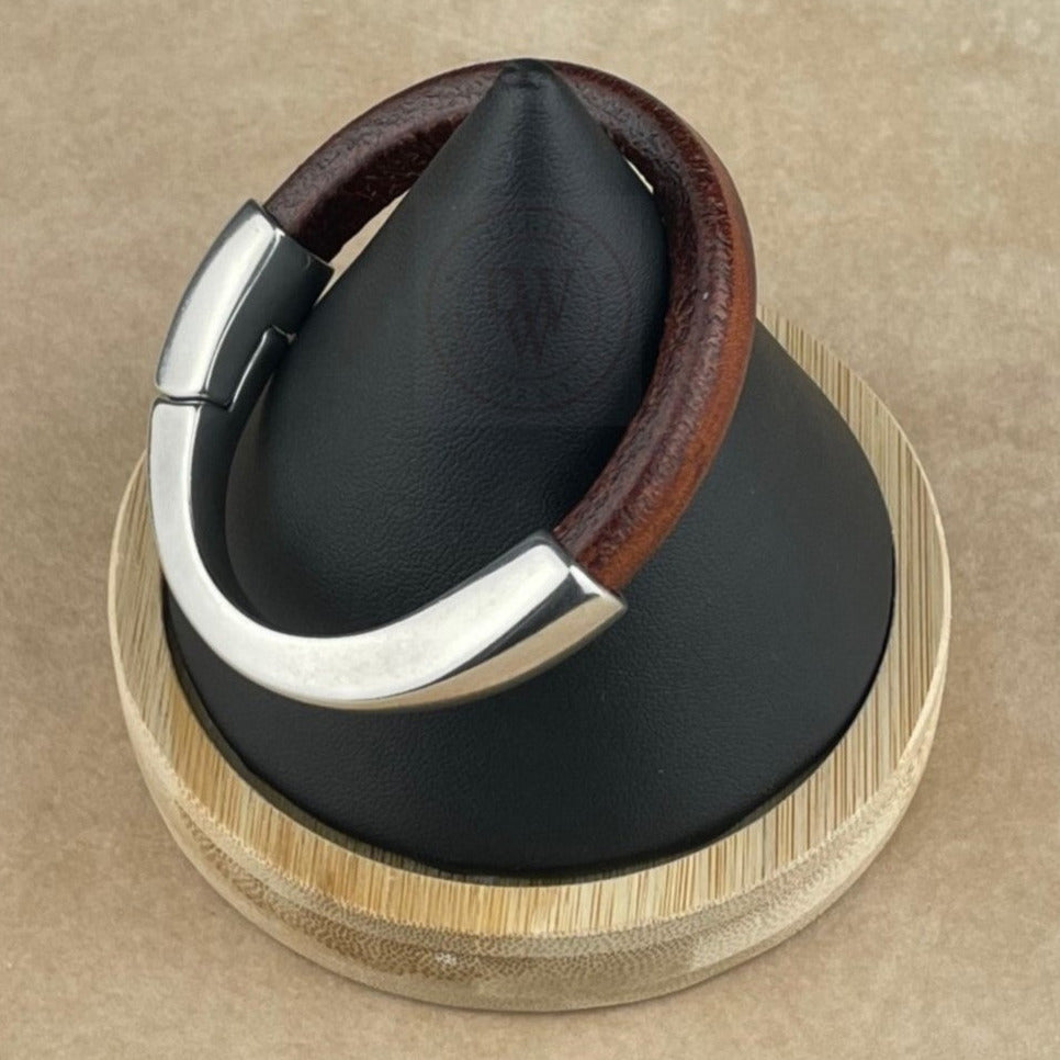 Distressed Whiskey Leather Arena Bracelet with Single Antique Silver Magnetic Clasp